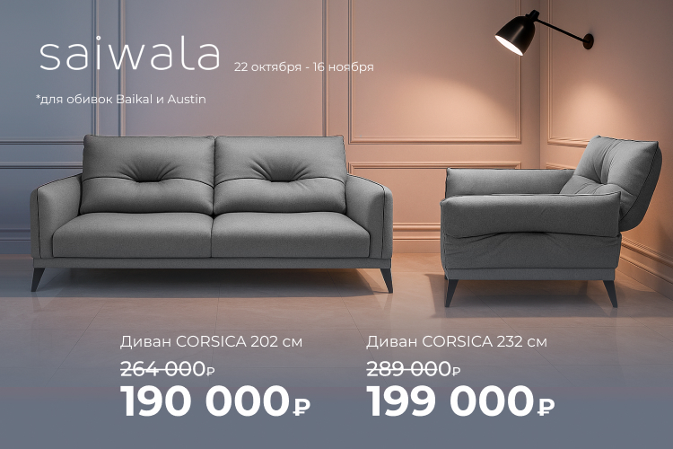 Saiwala запустили невероятно щедрую акцию совместно с поставщиками текстиля и комплектующих на популярнейшую модель прямых диванов — CORSICA