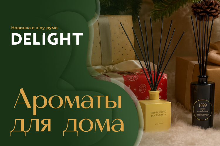 По-настоящему стильный интерьер — это не только идеальная мебель и декор, но ещё и уникальная атмосфера. Создать её помогут изысканные ароматы для дома. В шоу-руме DeLight в «Твинсторе» представлен широкий ассортимент диффузоров для интерьера от таких европейских брендов, как Tom Dixon, Villa Buti, Logevy Firenze 1965, Culti Milano, Teatro и других.