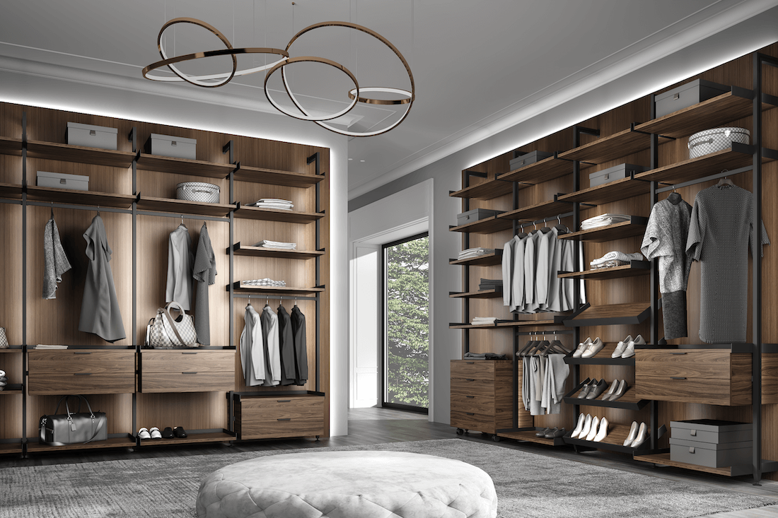 Компания предлагает мебель для разных комнат: от столовой и гардеробной до спальни и гостиной: