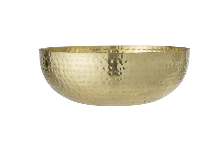 Золотистая современная чаша из алюминия с индивидуально нанесенным рисунком-печатью. Предназначен для контакта с пищевыми продуктами. Не мыть в посудомоечной машине. D36xH13 cм.