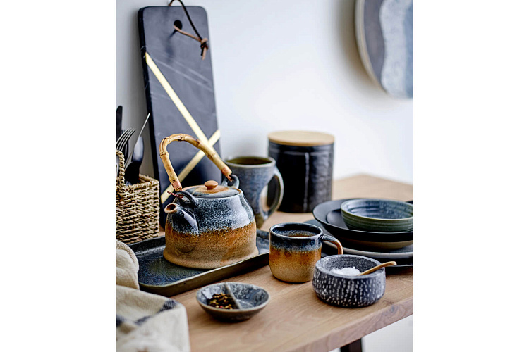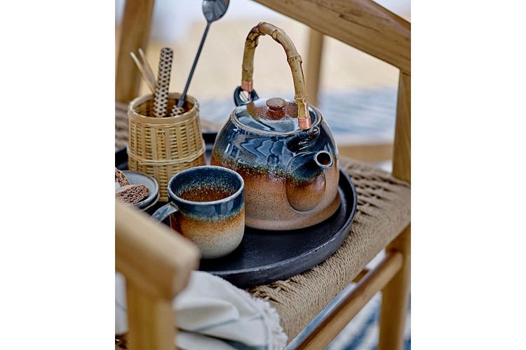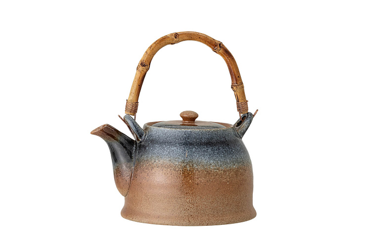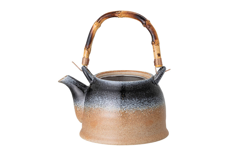 Фарфоровый чайник со съемным ситечком. Можно мыть в посудомоечной машине после снятия бамбуковой ручки. Объем 1000 мл. D15xH12 см.