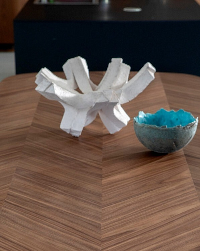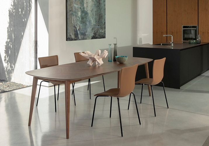 Дизайн Tonin Casa Creatives. Коллекция 2023 года. Классический силуэт стола Italo с бочкообразной столешницей и четырьмя ножками обеспечивает уверенность и подойдет к любому жилому помещению. А любопытный узор из ореха каналетто указывает на исключительность произведения. Деревянный стол, олицетворяющий дизайн вне времени. Столешница обтекаемой формы в виде бочки. шпонированная орехом или дубом. Еще большую изысканность столу придает геометричный рисунок шпона. Сочетание легкости линий и солидности материалов создают стол, идеально вписывающийся в любой интерьер. Стол Italo это пример настоящего ремесленного мастерства, образец продукта 100% Made in Italy. Итальянский стол производства 100% Made in Italy. Бренд Tonin Casa. Мебельная фабрика Tonin Casa основана в 1975 году итальянцем Gianni Tonin, который и сегодня стоит во главе компании. В начале восьмидесятых фабрика выпускает каталог своей первой классической коллекции, которая быстро завоевывает внутренний рынок сочетанием традиционного итальянского стиля и функциональностью. В девяностых годах классическую линейку дополняет современная коллекция, ставшая визитной карточкой компании и сделавшая мебель от Tonin Casa легко узнаваемой среди массы безликой современной мебели. Сегодня Gianni Tonin уже вместе со своим сыном Nicola Tonin - продолжателем мебельной династии и дизайнером - создают новые коллекции и, как любой модный дом с мировым именем, выпускают каждый год очередные шедевры мебельного искусства, демонстрируя их на выставках Милана, Нью-Йорка, Парижа и Москвы. Именно стремление производить качественную и стильную дизайнерскую мебель и воплотить в каждом предмете и аксессуаре функциональную роскошь покорило сердца покупателей в Европе и Америке.
