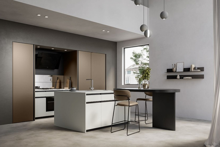 Система открывания и ручки также подлежат персонализации: доступны скрытые и утопленные ручки (такие как Brera), профили для захвата, угловые ручки на 30° или L-образные ручки. Благодаря такому разнообразию отделки и возможностей настройки кухня Kalì позволяет в полной мере выразить вашу индивидуальность и создать уникальное пространство, отвечающее самым разным вкусам и требованиям.
