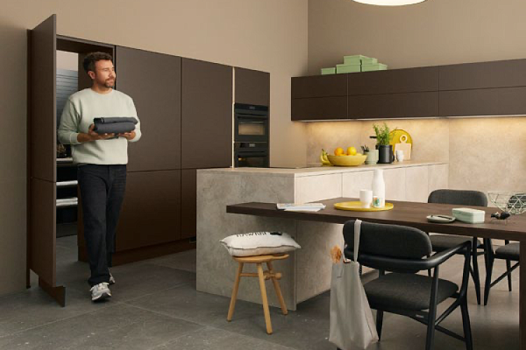 Вы почувствуете необычную текстуру с настоящим каменным фасадом CANTERA. Материал из кварца и доломита ощущается как слегка шероховатый песчаник, как настоящий элемент природы. В песочно-лаймовом кремовом цвете CANTERA сочетается здесь с SOFT LACK в сепия-коричневом цвете. Смежные зоны, такие как кладовая или подсобные помещения, могут быть оборудованы проходными дверями шириной 75 см. Пристроенный стол на этой кухне обеспечивает достаточно места для семейного времени. Будь то завтрак утром или горячий напиток вечером, это место, где вы можете смеяться, играть и есть вместе в любое время.