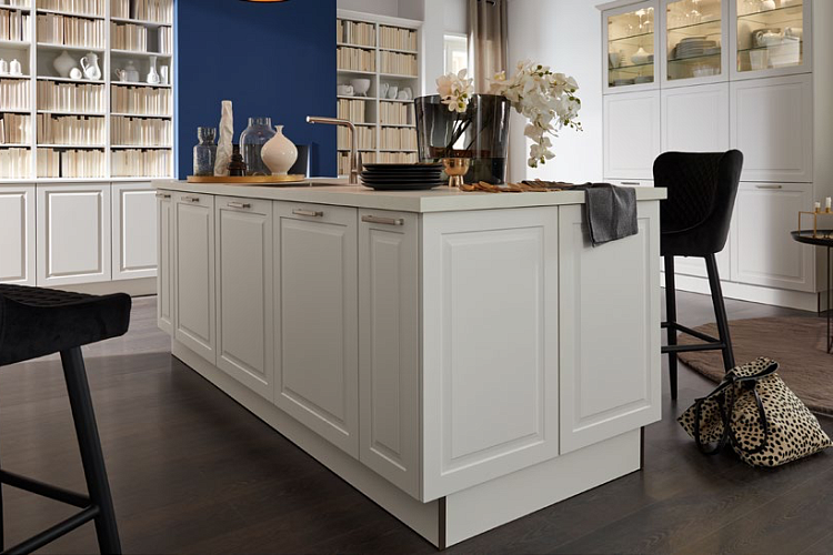 PORTO white soft mat легко воплощает мечту о кухне в деревенском стиле. Здесь характерный граненый вид фасадов стильный и вневременной. Встроенная библиотека и классический шкаф для посуды с элегантными стеклянными дверцами подхватывают стиль кухонного фасада. Соответствующие профили карнизов подчеркивают вид кухни в деревенском стиле и подчеркивают внимание к деталям.