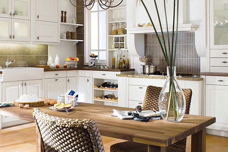Признаки ручной работы с характерным карнизом и пилястрами удачно объединяют элегантный кантри-стиль в гармоничные пропорции.