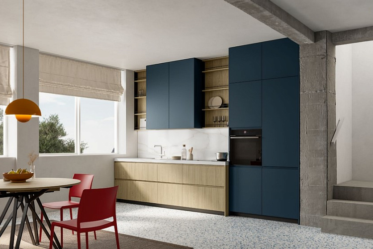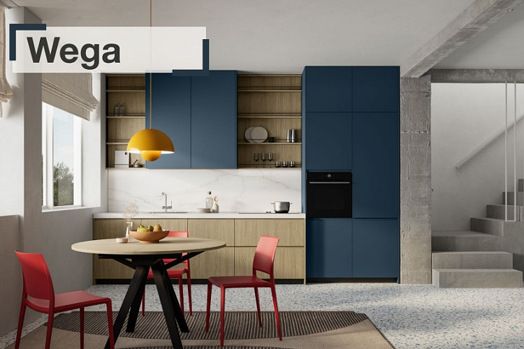 Горизонтальные прорези пазов не только служат практичным элементом для открывания, но и образуют выразительную игру линий, добавляя интерьеру ритм и визуальную глубину. Широкий выбор отделок — включая матовые и глянцевые лаки, ламинаты, шпон и покрытия с открытыми порами — позволяет адаптировать кухню к любым стилистическим предпочтениям. Палитра цветов варьируется от ярких и смелых оттенков до глубоких и сдержанных тонов, что дает свободу для создания индивидуального пространства. Wega отражает многолетний опыт Arredo3, предлагая сочетание стилистического разнообразия, высокого качества исполнения и современной эстетики, ориентированной на тех, кто ценит гармонию, практичность и выразительный дизайн.