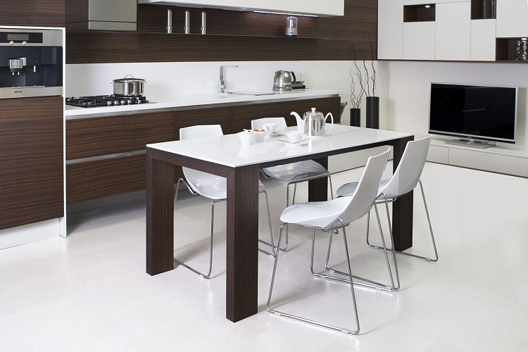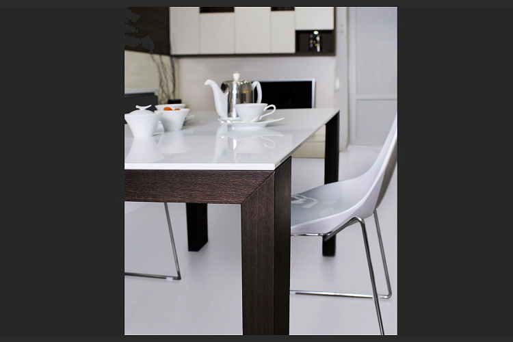 Стол великолепно впишется в интерьер, выполненный в стиле минимализма. Контрастное сочетание светлой столешницы из стекла или искусственного камня и темного основания добавляет модели элегантность. Стильное решение для современного интерьера.