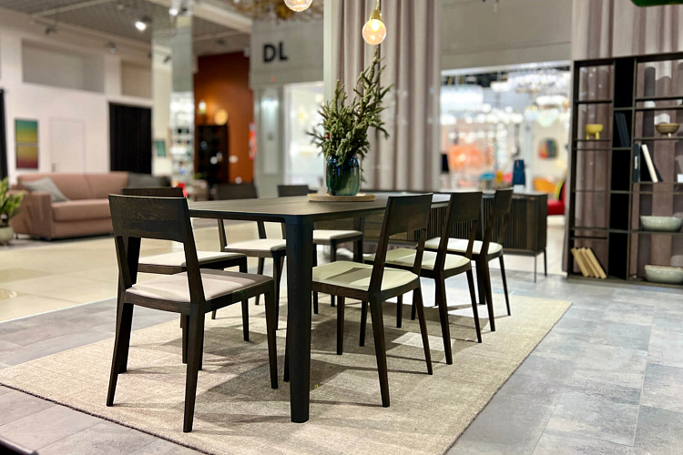 Стол в популярном ретро стиле на конических ножках. Стабильность плоскости столешницы достигается встроенными металлическими стяжками и компенсационными пропилами. Для тех кто любит принимать гостей, стол можно доукомплектовать докладами по 60см с каждой стороны. Лидер продаж на европейском рынке.
