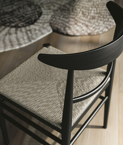 Стул. Каркас из золы, окрашенный древесным углем, Соломенное сиденье