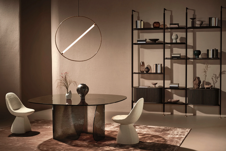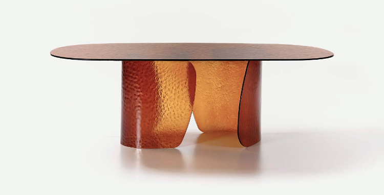 Изящные изгибы и плавные формы стола Blur придают ему ощущение текучести, создавая выразительные световые эффекты благодаря текстурированному стеклу, которое пропускает свет, оживляя окружающее пространство. Основание и столешница из запечённого стекла доступны в различных цветах, создавая гармоничную геометрию световых и цветовых дорожек.