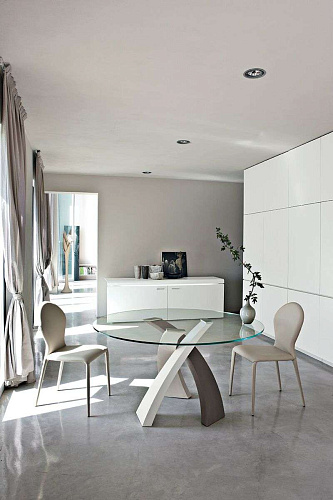 100% Made in Italy. Коллекция My Home. Высокий уровень Основание этого дизайнерского стола изготовлено из окрашенного металла. Столешница выполнена из закаленного стекла. К ней посредством лазерной сварки закреплены стальные пластины, которые в дальнейшем крепятся к основанию. Такой вариант крепления наиболее прочный и эстетичный .Цвета основания-белый матовый, черный матовый, серо-коричневый, триколор (белый, бежевый и серо-коричневый), бронзовый или окраска по шкале RAL. Столешница из закаленного прозрачного, дымчатого или экстрапрозрачного стекла V100. Экстрапрозрачное стекло V100 толщиной 12 мм подвергается дополнительному окислению и не дает зеленоватых бликов, как обычное стекло. Столешница из этого стекла выдерживает вес до 140 кг. Стекло имеет дополнительное внутреннее усиление, которое делает его более прочным при ударе. Мебельная фабрика Tonin Casa основана в 1975 году итальянцем Gianni Tonin, который и сегодня стоит во главе компании. В начале восьмидесятых фабрика выпускает каталог своей первой классической коллекции, которая быстро завоевывает внутренний рынок сочетанием традиционного итальянского стиля и функциональностью. В девяностых годах классическую линейку дополняет современная коллекция, ставшая визитной карточкой компании и сделавшая мебель от Tonin Casa легко узнаваемой среди массы безликой современной мебели. Сегодня Gianni Tonin уже вместе со своим сыном Nicola Tonin - продолжателем мебельной династии и дизайнером - создают новые коллекции и, как любой модный дом с мировым именем, выпускают каждый год очередные шедевры мебельного искусства, демонстрируя их на выставках Милана, Нью-Йорка, Парижа и Москвы. Именно стремление производить качественную и стильную дизайнерскую мебель и воплотить в каждом предмете и аксессуаре функциональную роскошь покорило сердца покупателей в Европе и Америке.