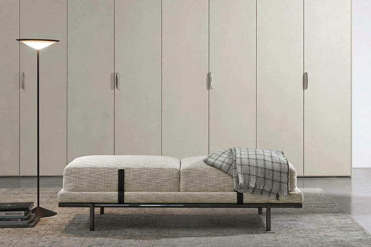 Банкетка New Bond — это воплощение итальянского мастерства и стиля, выполненная фабрикой FLOU. Элегантная форма и высококачественные материалы создают атмосферу изысканности в вашем интерьере. Набивная структура на цилиндрических металлических ножках, отделанных матовым или глянцевым черным никелем, гармонично сочетается с контрастными кожаными ремнями на подушках.