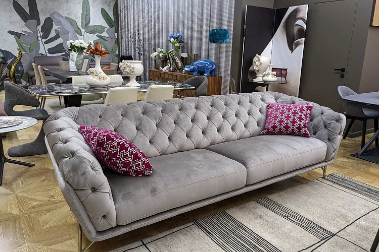 Art Nouveau это версия chic двух предыдущих моделей, Mater Familias e Venere. Сохраняя изысканные очертания, техника капитонне сразу поднимает уровень дивана в высокий сегмент. Элегантный внешний профиль подчеркнут скошенной формой каркаса и оригинальными ножками в золотой отделке. Идеальный диван для интерьеров Art Deco. Комплектация дивана, представленного на экспозиции: ДИВАН Модель ART NOUVEAU. CAL1148 артикул F2592 354 Длина L 260 см Глубина P 95 см Высота H 83 см Высота сиденья HS 48 см Глубина сиденья RS 54 см Обивка – Ткань Кат.TB – Dubai. Ножки – метал – Шампань 1965 год- начало истории фабрики CALIA 2015 год стал особенным годом для фабрики Calia Italia, которая отпраздновала первые 50 лет с момента ее основания. Полвека работы над постоянно разрабатываемыми проектами для непрерывно расширяющегося рынка, полвека работы способных и опытных специалистов, которые в состоянии предоставить каждой модели кресла или дивана прекрасное качество и исключительность, присущие итальянскому производству - Made in Italy. История фабрики Calia Italia начинается с человека, основателя фабрики Либорио Винченцо Калия- плотника и мастера своего дела, который начал создавать и производить диваны в Матере в 1965 году. Благодаря творческому подходу Саверио Калия и коммерческой стратегии Джузеппе Калия марка Сalia Italia сегодня может предложить свыше 50 новых моделей в год с широким ассортиментом отделки в коже и ткани: широкая гамма из 40 артикулов и свыше 400 вариантов расцветок. Calia Italia направляет свое предложение, преимуществом которого является 100% итальянское производство, постоянно развивающемуся международному рынку, который от Европы до Америки открывается Ближнему Востоку, затрагивает Дальний Восток, Китай, южную часть Кореи и Японию. Фабрика располагается в окрестностях Матеры, в области Мурджа, в сердце производства мягкой мебели и логистической передовой системы. Ремесленное искусство, ценность истоков, толчок в сторону будущего.