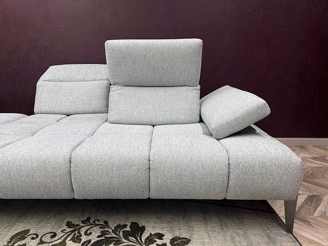 Skyline – диван в современном стиле из коллекции 2024 года, представленной на миланской выставке. Облегченный силуэт дивана формируется высокими скошенными ножками, поднимающими каркас на 19 см от пола, геометричной простежкой и подлокотниками, способными изменять угол наклона и сдвигаться в сторону. Спинка дивана оснащена регулируемым подголовником, который не только обеспечивает дополнительный комфорт, но и изменяет внешний вид дивана в зависимости от положения. Диван специально спроектирован таким образом, чтобы привлечь на себя все внимания и стать центральным элементом интерьера. Рулонные валики сзади спинок являются их опорой и декоративным элементом одновременно. Диван прекрасен со всех ракурсов. Механизмы, встроенные в спинку и в подлокотники увеличивают глубину сиденья на 42 см и ширину на 28 см с каждой стороны.. Подлокотник можно поднимать в любом положении. Металлические ножки поставляется в стандартной матово-черной отделке.