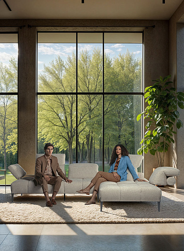 Диван готовый к отгрузке со склада в Италии Skyline – диван в современном стиле из коллекции 2024 года, представленной на миланской выставке. Облегченный силуэт дивана формируется высокими скошенными ножками, поднимающими каркас на 19 см от пола, геометричной простежкой и подлокотниками, способными изменять угол наклона и сдвигаться в сторону. Спинка дивана оснащена регулируемым подголовником, который не только обеспечивает дополнительный комфорт, но и изменяет внешний вид дивана в зависимости от положения. Диван специально спроектирован таким образом, чтобы привлечь на себя все внимания и стать центральным элементом интерьера. Рулонные валики сзади спинок являются их опорой и декоративным элементом одновременно. Диван прекрасен со всех ракурсов. Механизмы, встроенные в спинку и в подлокотники увеличивают глубину сиденья на 42 см и ширину на 28 см с каждой стороны.. Подлокотник можно поднимать в любом положении. Металлические ножки поставляется в стандартной матово-черной отделке. Цена просчитана за диван в обивке - ткань TF L300 P112/224 H77 1965 год- начало истории фабрики CALIA 2015 год стал особенным годом для фабрики Calia Italia, которая отпраздновала первые 50 лет с момента ее основания. Полвека работы над постоянно разрабатываемыми проектами для непрерывно расширяющегося рынка, полвека работы способных и опытных специалистов, которые в состоянии предоставить каждой модели кресла или дивана прекрасное качество и исключительность, присущие итальянскому производству - Made in Italy. История фабрики Calia Italia начинается с человека, основателя фабрики Либорио Винченцо Калия- плотника и мастера своего дела, который начал создавать и производить диваны в Матере в 1965 году. Благодаря творческому подходу Саверио Калия и коммерческой стратегии Джузеппе Калия марка Сalia Italia сегодня может предложить свыше 50 новых моделей в год с широким ассортиментом отделки в коже и ткани: широкая гамма из 40 артикулов и свыше 400 вариантов расцветок. Calia Italia направляет свое предложение, преимуществом которого является 100% итальянское производство, постоянно развивающемуся международному рынку, который от Европы до Америки открывается Ближнему Востоку, затрагивает Дальний Восток, Китай, южную часть Кореи и Японию. Фабрика располагается в окрестностях Матеры, в области Мурджа, в сердце производства мягкой мебели и логистической передовой системы. Ремесленное искусство, ценность истоков, толчок в сторону будущего.