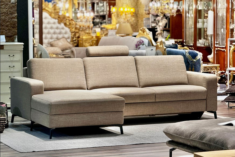 Диван угловой NAPELS со спальным местом. Съемный подголовник с возможностью разного расположения. Ноги металл, цвет-антрацит, 13 см.