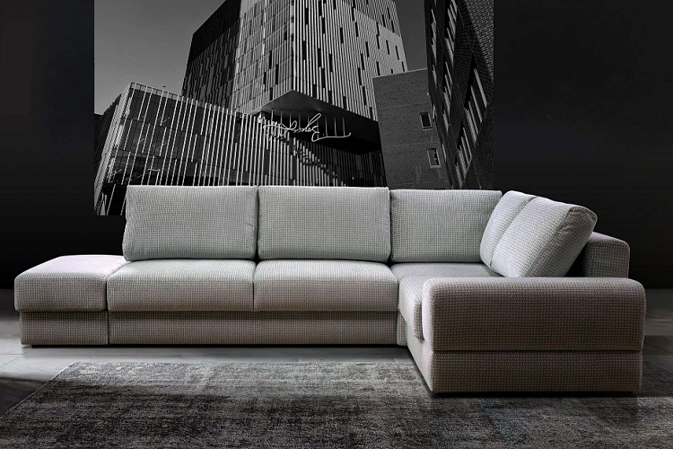 Минималистичный модульный диван с комфортной посадкой и большим выбором вариантов спального места.