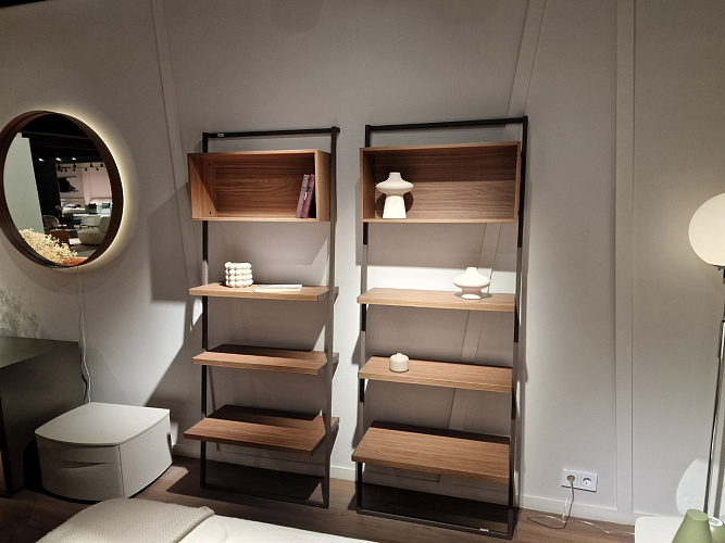 Элегантное сочетание формы и функциональности делает этот стеллаж не просто элементом мебели, но и стильным акцентом, который гармонично вписывается в интерьер, сохраняя пространство свободным и упорядоченным.