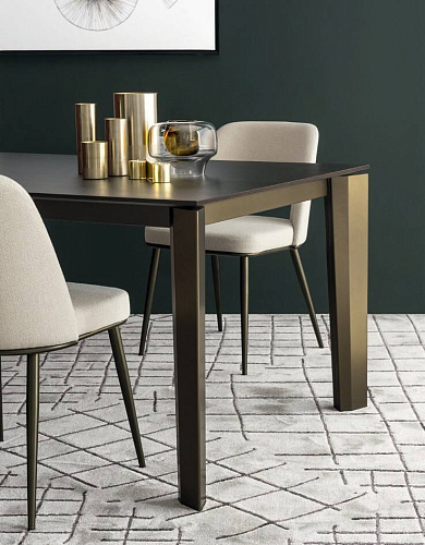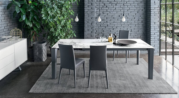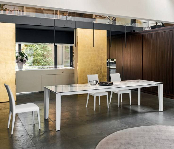 Породистая элегантность стола Delta выражена в четких и графичных линиях каркаса. Граненые ноги и прямоугольная столешница из керамики или закаленного стекла создают современный и гармоничный стол. Благодаря телескопическому механизму раскладывания длина стола увеличивается на 60 см, что позволяет разместить до 12 человек. Ноги стола выдвигаются вместе с механизмом. Таким образом все гости смогут разместиться максимально комфортно.