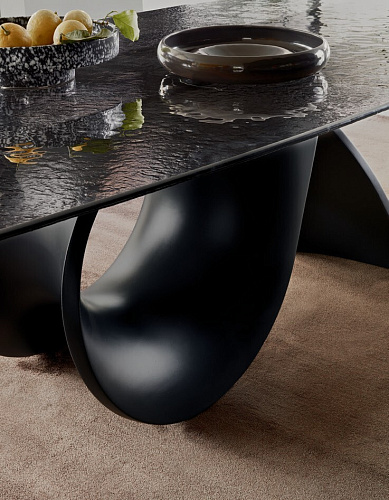 Традиционно цемент связывают с визуальной и материальной тяжестью и твердостью. Дизайнер Gino Carollo представил его в ином образе: более легким, но одновременно прочным. Мягкие формы вдохновлены органическими линиями природы. Основание стола чем-то напоминает раковину с ее гребнями, изгибами и волнами. Цемент приобретает новое эстетическое и функциональное значение. Повседневный предмет интерьера превратился в эффектную скульптура, меняющуюся в зависимости от того, с какого ракурса на него смотреть. Эстетика стола - это вдохновение, рожденное полетом фантазии и мечтами о прекрасных островах.