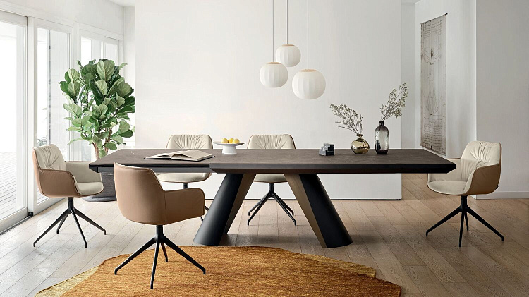 Благодаря продуманным пропорциям стол Apian воплощает в себе дизайнерский подход, который придает большое значение архитектурному стилю, подкрепленному тщательно обработанными материалами.
