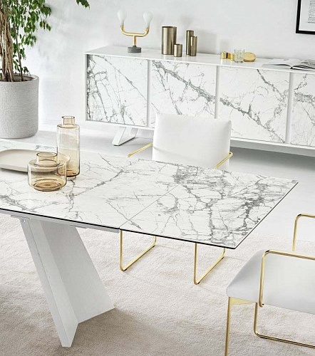 Керамика Calligaris производится при соединении керамогранитной плиты с закаленным флоат-стеклом. В результате получается поверхность с исключительными характеристиками устойчивости к царапинам, ударам, пятнам, термическим и химическим воздействиям. Она легко чистится и абсолютно гигиенична: не впитывает жидкости и не выделяет вредных веществ.