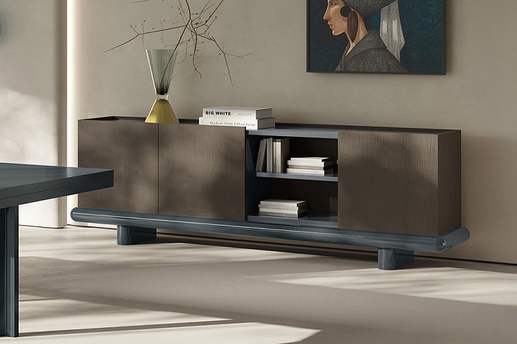 Комод Amama создаёт выразительный акцент в современной гостиной, сочетая округлую базу с чёткой верхней линией.