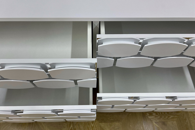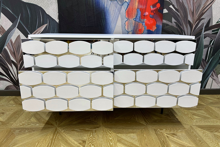 100% Made in Italy. Высокий уровень. Коллекция Design Couture. Замысловатый узор на фасадах, игра структуры дерева и отблески зеркала контрастируют и создают гармонию. Концепция пчелиных сот лежит в основе тумбы Honey. Творение мастеров Tonin Casa сфокусировано на дизайне 50-х годов. Каркас и соты возможны в отделках белый матовый, орех и темный дуб. Дизайн от Nicola Tonin. L 145 P 47 H 62 cm Мебельная фабрика Tonin Casa основана в 1975 году итальянцем Gianni Tonin, который и сегодня стоит во главе компании. В начале восьмидесятых фабрика выпускает каталог своей первой классической коллекции, которая быстро завоевывает внутренний рынок сочетанием традиционного итальянского стиля и функциональностью. В девяностых годах классическую линейку дополняет современная коллекция, ставшая визитной карточкой компании и сделавшая мебель от Tonin Casa легко узнаваемой среди массы безликой современной мебели. Сегодня Gianni Tonin уже вместе со своим сыном Nicola Tonin - продолжателем мебельной династии и дизайнером - создают новые коллекции и, как любой модный дом с мировым именем, выпускают каждый год очередные шедевры мебельного искусства, демонстрируя их на выставках Милана, Нью-Йорка, Парижа и Москвы. Именно стремление производить качественную и стильную дизайнерскую мебель и воплотить в каждом предмете и аксессуаре функциональную роскошь покорило сердца покупателей в Европе и Америке.