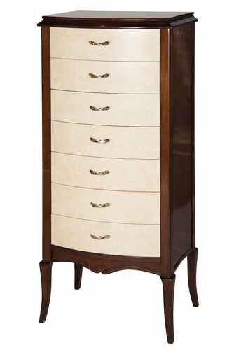 Высокий комод для белья или хранения других предметов. Комбинированная отделка из шпона вишни и лакированный, кремовых фасадов. Массив дерева.