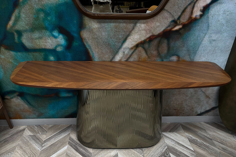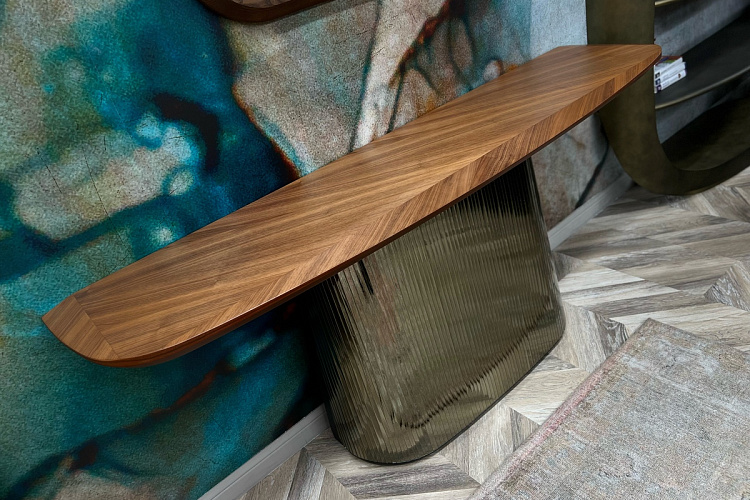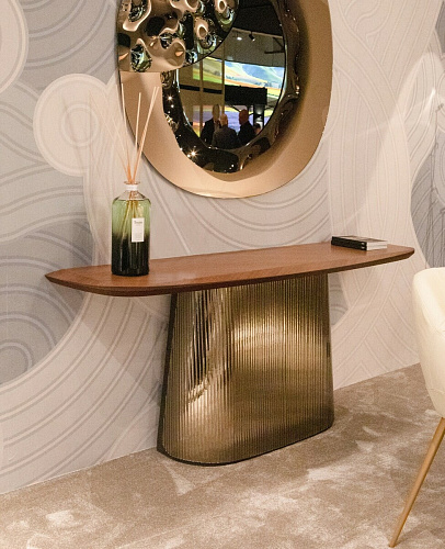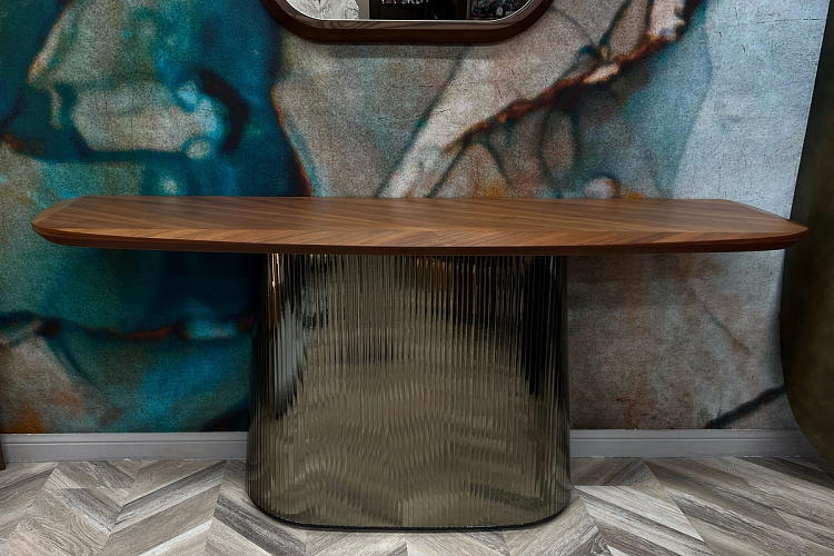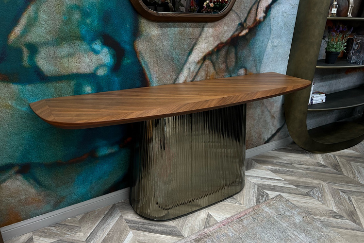 Консольный стол Adone Plissé – это воплощение изысканности и утончённости. Его основание выполнено из трубчатого стекла с посеребрением, которое, словно произведение искусства, переплетается изящными складками, напоминающими плиссированное платье. Эти складки не только придают столу лёгкость и воздушность, но и создают игру света, что добавляет интерьеру глубины и динамики. Столешница предлагается в двух вариантах: светлая керамика, идеально гладкая и блестящая, как зеркало, или дерево Silk Wood, обладающее уникальным ромбовидным сечением, придающим поверхности текстуру и визуальный объём. Оба варианта подчёркивают благородство и стиль консоли Adone Plissé, способной стать центром внимания любого пространства. L180 P45 H75 Мебельная фабрика Tonin Casa основана в 1975 году итальянцем Gianni Tonin, который и сегодня стоит во главе компании. В начале восьмидесятых фабрика выпускает каталог своей первой классической коллекции, которая быстро завоевывает внутренний рынок сочетанием традиционного итальянского стиля и функциональностью. В девяностых годах классическую линейку дополняет современная коллекция, ставшая визитной карточкой компании и сделавшая мебель от Tonin Casa легко узнаваемой среди массы безликой современной мебели. Сегодня Gianni Tonin уже вместе со своим сыном Nicola Tonin - продолжателем мебельной династии и дизайнером - создают новые коллекции и, как любой модный дом с мировым именем, выпускают каждый год очередные шедевры мебельного искусства, демонстрируя их на выставках Милана, Нью-Йорка, Парижа и Москвы. Именно стремление производить качественную и стильную дизайнерскую мебель и воплотить в каждом предмете и аксессуаре функциональную роскошь покорило сердца покупателей в Европе и Америке.