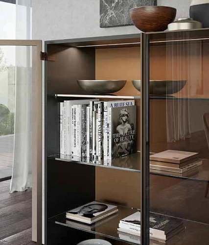 Элегантна витрина из коллекции Glass Up. GLASS UP - это тумба с фасадами из прозрачного стекла дымчатого или бронзового цвета в металлической раме. Фасады за счет специальных петель могут открываться на 270. В коллекции Glass Up имеется также тумба. Задняя стенка опционально может быть обита натуральной кожей cuoio. Размер L96 P49 H140. Задача итальянской мебельной фабрики Dall’Agnese – служить комфорту своих клиентов. Вот уже 70 лет итальянская фабрика Dall’Agnese создает мебель премиум уровня из высококачественных материалов. На всех этапах производства строго отслеживается соблюдение технологии и качество изделий. Мебель Dall'Agnese сертифицирована Институтом защиты итальянских производителей ITPI, что подтверждает полностью итальянское производство. Также компания получила сертификат менеджмента качества по европейской системе ISO 9001.