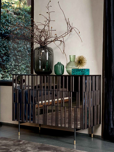 Деревянный комод с 3 выдвижными ящиками / боковинами с зеркальным эффектом и деревянными деталями. Окрашенная металлическая основа и латунные ножки. L 125 P 56 H 93 cm Мебельная фабрика Tonin Casa основана в 1975 году итальянцем Gianni Tonin, который и сегодня стоит во главе компании. В начале восьмидесятых фабрика выпускает каталог своей первой классической коллекции, которая быстро завоевывает внутренний рынок сочетанием традиционного итальянского стиля и функциональностью. В девяностых годах классическую линейку дополняет современная коллекция, ставшая визитной карточкой компании и сделавшая мебель от Tonin Casa легко узнаваемой среди массы безликой современной мебели. Сегодня Gianni Tonin уже вместе со своим сыном Nicola Tonin - продолжателем мебельной династии и дизайнером - создают новые коллекции и, как любой модный дом с мировым именем, выпускают каждый год очередные шедевры мебельного искусства, демонстрируя их на выставках Милана, Нью-Йорка, Парижа и Москвы. Именно стремление производить качественную и стильную дизайнерскую мебель и воплотить в каждом предмете и аксессуаре функциональную роскошь покорило сердца покупателей в Европе и Америке.
