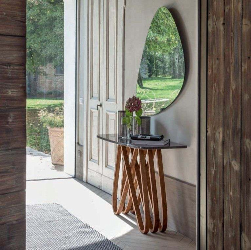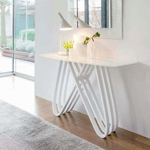 100% Made in Italy. Высокий уровень. Консоль из новой коллекции My Home. Основание изготовлено из гнутого дерева и может быть в следующих отделках: белый матовый, орех или темный дуб. Столешница из закаленного черного или экстрабелого стекла или из мрамора (Carrara белый глянцевый, серый глянцевый, Emperador бронзовый глянцевый или Marqunia черный глянцевый). Мебельная фабрика Tonin Casa основана в 1975 году итальянцем Gianni Tonin, который и сегодня стоит во главе компании. В начале восьмидесятых фабрика выпускает каталог своей первой классической коллекции, которая быстро завоевывает внутренний рынок сочетанием традиционного итальянского стиля и функциональностью. В девяностых годах классическую линейку дополняет современная коллекция, ставшая визитной карточкой компании и сделавшая мебель от Tonin Casa легко узнаваемой среди массы безликой современной мебели. Сегодня Gianni Tonin уже вместе со своим сыном Nicola Tonin - продолжателем мебельной династии и дизайнером - создают новые коллекции и, как любой модный дом с мировым именем, выпускают каждый год очередные шедевры мебельного искусства, демонстрируя их на выставках Милана, Нью-Йорка, Парижа и Москвы. Именно стремление производить качественную и стильную дизайнерскую мебель и воплотить в каждом предмете и аксессуаре функциональную роскошь покорило сердца покупателей в Европе и Америке.