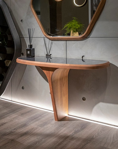 Консольный столик Tea воплощает собой изысканную гармонию материалов и форм. Легкость и воздушность конструкции достигается за счет столешницы, выполненной из натурального мрамора, которая словно парит над основанием, напоминающим острый киль гоночной яхты. Элегантный узор мрамора обрамлен деревянной кромкой цвета ореха Каналетто мягко переходящей в основание. Эта комбинация материалов не только визуально привлекательна, но и демонстрирует безупречный вкус, превращая функциональный предмет мебели в роскошное украшение интерьера. Мебельная фабрика Tonin Casa основана в 1975 году итальянцем Gianni Tonin, который и сегодня стоит во главе компании. В начале восьмидесятых фабрика выпускает каталог своей первой классической коллекции, которая быстро завоевывает внутренний рынок сочетанием традиционного итальянского стиля и функциональностью. В девяностых годах классическую линейку дополняет современная коллекция, ставшая визитной карточкой компании и сделавшая мебель от Tonin Casa легко узнаваемой среди массы безликой современной мебели. Сегодня Gianni Tonin уже вместе со своим сыном Nicola Tonin - продолжателем мебельной династии и дизайнером - создают новые коллекции и, как любой модный дом с мировым именем, выпускают каждый год очередные шедевры мебельного искусства, демонстрируя их на выставках Милана, Нью-Йорка, Парижа и Москвы. Именно стремление производить качественную и стильную дизайнерскую мебель и воплотить в каждом предмете и аксессуаре функциональную роскошь покорило сердца покупателей в Европе и Америке.