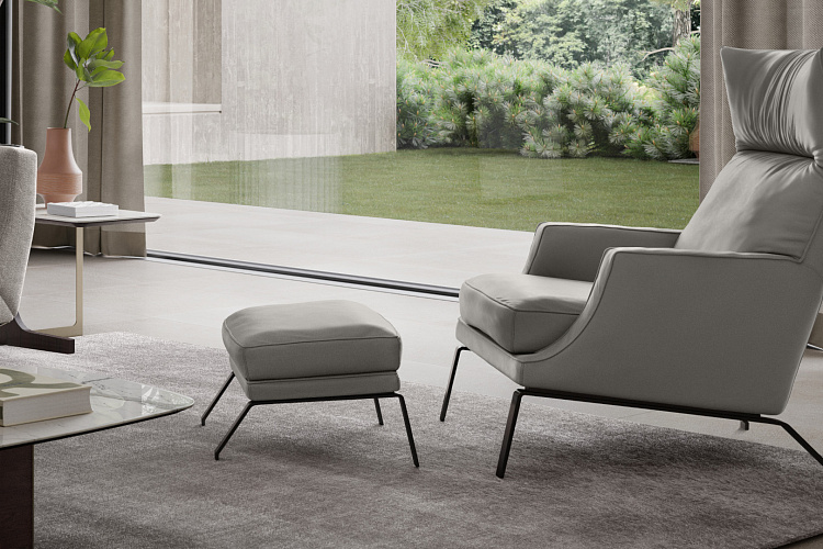 Передние металлические ножки, выполненные по эксклюзивному дизайну, немного выше задних, что создаёт оптимальный наклон для максимального удобства. Идеальному отдыху способствует и продуманное изножье, завершающее элегантный облик модели.