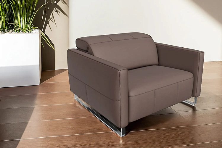 Благодаря выбору между кожей и тканью в широкой палитре цветов, кресло легко персонализировать под существующий интерьер, будь то минимализм или классика.