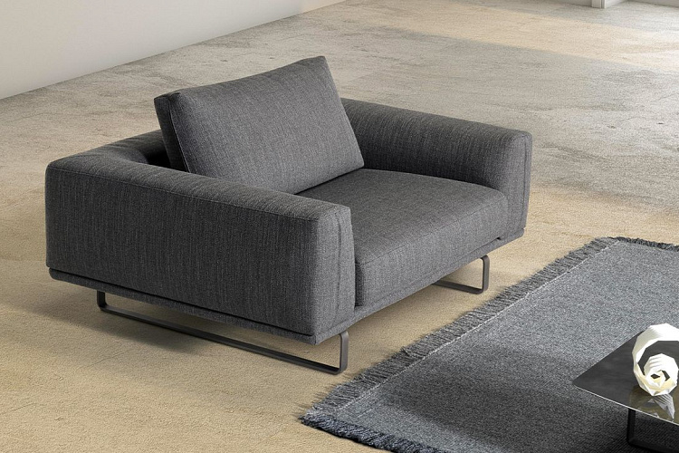 Модель отличают стильные ножки из темно-серого металла с особой отделкой, задающие современный тон. Высокий уровень комфорта и анатомической поддержки обеспечивает сложное многослойное наполнение: сочетание полиуретана, пены с эффектом памяти и перьевой набивки. Такая конструкция гарантирует долговечность и позволяет креслу оставаться актуальным долгие годы.