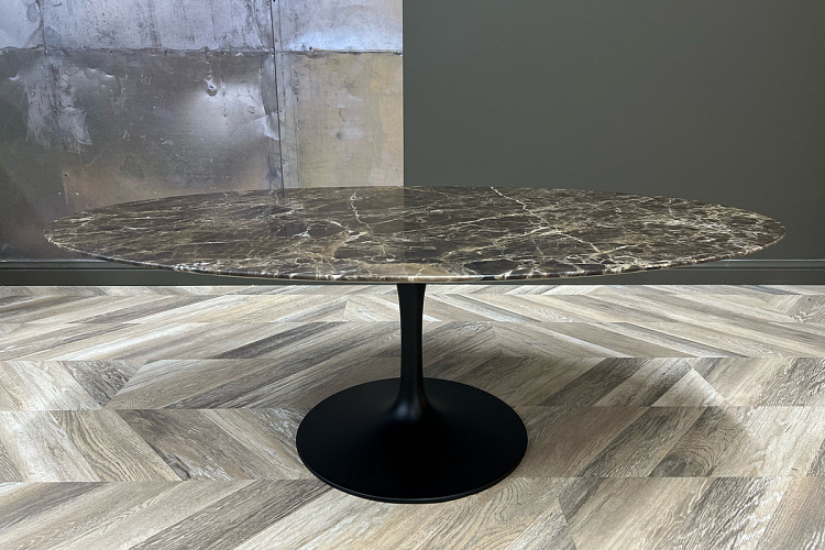 Дизайнер Eero Saarinen В 1956 году архитектор Eero Saarinen создал коллекцию мебели Triumph для компании Knoll. Она была основана на принципах тотальной архитектуры Баухауса, где мебель гармонично дополняет пространство, создавая идеальный дизайн. Knoll получила эксклюзивный патент на производство. В своём подходе к архитектуре и дизайну Eero Saarinen стремился найти основную идею и свести её к наиболее эффективной структурной концепции. Непринужденное величие стола родилось из желания устранить путаницу, вызванную «скоплением ножек» под типичными стульями и столами. Eero Saarinen нашёл идеальный баланс между красотой и прочностью. Даже при максимальном размере столешницы 330 см, стол устойчив и поражает своей стабильностью. Стол Saarinen и стул Tulip стали символами современного дизайна середины XX века. Однако срок патента Knoll на их эксклюзивное производство истёк, и сегодня бренд CTS Design создаёт культовую дизайнерскую мебель, используя оригинальные материалы и формы, указанные в патенте. Основание стола выполнено из прочного литого алюминия, а столешница — из керамогранита, свойства которого напоминают натуральный камень. Благодаря высокой прочности, столешница обеспечивает чистоту, водостойкость и стабильность цвета. Совершая покупку вы не просто приобретаете стол, вы инвестируете в подлинное произведение искусства! Цена просчитана за стол с овальной столешницей из натурального мрамора L120 P75 H41 Наша история CTS Design — тосканская компания, производящая стулья, столы и дизайнерские предметы интерьера для дома и общественных помещений. Все этапы производственного процесса осуществляются в Италии квалифицированными и высоко профессиональными рабочими. CTS производит и продает по всему миру столы, стулья, кресла и диваны, вдохновляясь дизайнерским стилем Баухаус и самыми яркими предметами мебели, представляющими его. История CTS Design уходит корнями в 1976 году, когда в Поджибонси, провинция Сиена Вальдемаро, господин Ваннони основал компанию по производству стульев. Именно страсть к ремесленному производству мебели ручной работы и любовь к деталям легли в основу успешного бренда. Сегодня CTS Design является хранителем традиционных методов ремесла, искусно объединенных с использованием самых современных технологий. Для создания продукции, полностью произведенной в Италии, используются только высококачественные материалы: массив дуба, кожа, обработанная итальянскими кожевенными артелями, экокожа, сертифицированная для контрактного использования, мрамор, отобранный непосредственно в карьере, качественная керамика и ткани премиум-класса. Внимание к деталям, качеству материалов и ко всем этапам обработки всегда отличали CTS Design. Эти факторы является основополагающим для того, чтобы иметь возможность предлагать клиентам постоянный и превосходный стандарт качества. Это позволило CTS присутствовать на итальянском и международном рынке на протяжении почти 50 лет. Бренд CTS Design ориентирован как на розничных продавцов, так и на производителей, дизайн-студии и архитектурные студии, предлагая широкий ассортимент товаров, включая столы, стулья, табуреты, кресла и диваны. Прекрасная организация и выстроенная производственная структура компании позволяет персонализировать продукцию по размеру и отделке, а также реализовывать элементы и целые проекты полностью по ин