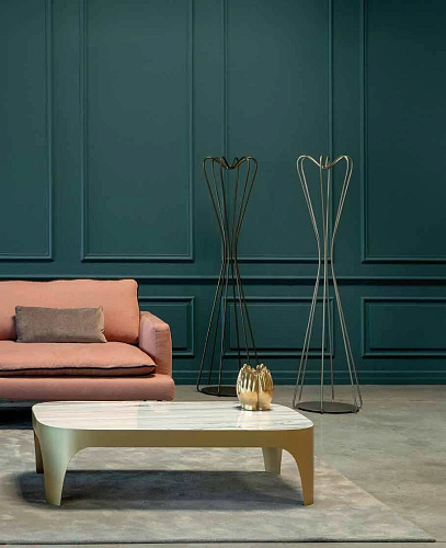 Линейка журнальных столиков Modì от итfльянского бренда Tonin Casa представлена двумя моделями разного размера и одним кофейным столиком, объединенными узнаваемым силуэтом основания. Плавный переход от столешницы к основанию — характерная черта коллекции, придающая ей особую элегантность. Металлическое основание, выполненное в цвете тёмной бронзы или сатинового золота, грациозно сочетается со столешницей из белого керамогранита с мраморным рисунком. Такое сочетание материалов и оттенков позволяет гармонично комбинировать все элементы линейки между собой, создавая разнообразные композиции, которые будут расставлять визуальные акценты в интерьере. Мебельная фабрика Tonin Casa основана в 1975 году итальянцем Gianni Tonin, который и сегодня стоит во главе компании. В начале восьмидесятых фабрика выпускает каталог своей первой классической коллекции, которая быстро завоевывает внутренний рынок сочетанием традиционного итальянского стиля и функциональностью. В девяностых годах классическую линейку дополняет современная коллекция, ставшая визитной карточкой компании и сделавшая мебель от Tonin Casa легко узнаваемой среди массы безликой современной мебели. Сегодня Gianni Tonin уже вместе со своим сыном Nicola Tonin - продолжателем мебельной династии и дизайнером - создают новые коллекции и, как любой модный дом с мировым именем, выпускают каждый год очередные шедевры мебельного искусства, демонстрируя их на выставках Милана, Нью-Йорка, Парижа и Москвы. Именно стремление производить качественную и стильную дизайнерскую мебель и воплотить в каждом предмете и аксессуаре функциональную роскошь покорило сердца покупателей в Европе и Америке.