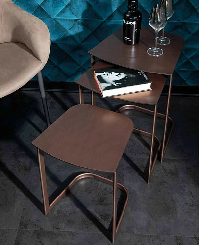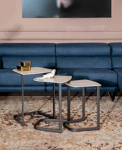 Запоминающийся триптих журнальных столиков Rim — это стильное решение для интерьера. Столики элегантно штабелируются благодаря оригинальной форме металлического основания, что позволяет экономить пространство или создать многоярусную композицию, где каждый элемент станет частью единой композиции. Вы можете выбрать монохромное исполнение, где столешница и основание выполнены в одном из двух элегантных цветов: серый уголь или матовая бронза. Также возможен вариант с белой керамогранитной столешницей, украшенной мраморным рисунком, который добавит пространству нотку роскоши и утончённости. Мебельная фабрика Tonin Casa основана в 1975 году итальянцем Gianni Tonin, который и сегодня стоит во главе компании. В начале восьмидесятых фабрика выпускает каталог своей первой классической коллекции, которая быстро завоевывает внутренний рынок сочетанием традиционного итальянского стиля и функциональностью. В девяностых годах классическую линейку дополняет современная коллекция, ставшая визитной карточкой компании и сделавшая мебель от Tonin Casa легко узнаваемой среди массы безликой современной мебели. Сегодня Gianni Tonin уже вместе со своим сыном Nicola Tonin - продолжателем мебельной династии и дизайнером - создают новые коллекции и, как любой модный дом с мировым именем, выпускают каждый год очередные шедевры мебельного искусства, демонстрируя их на выставках Милана, Нью-Йорка, Парижа и Москвы. Именно стремление производить качественную и стильную дизайнерскую мебель и воплотить в каждом предмете и аксессуаре функциональную роскошь покорило сердца покупателей в Европе и Америке.