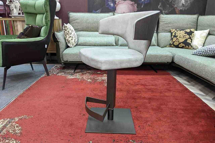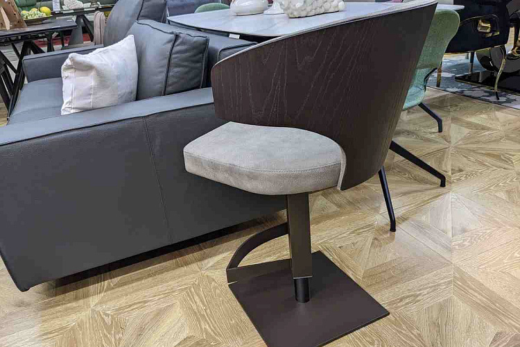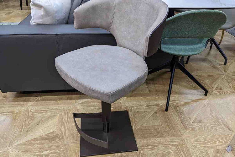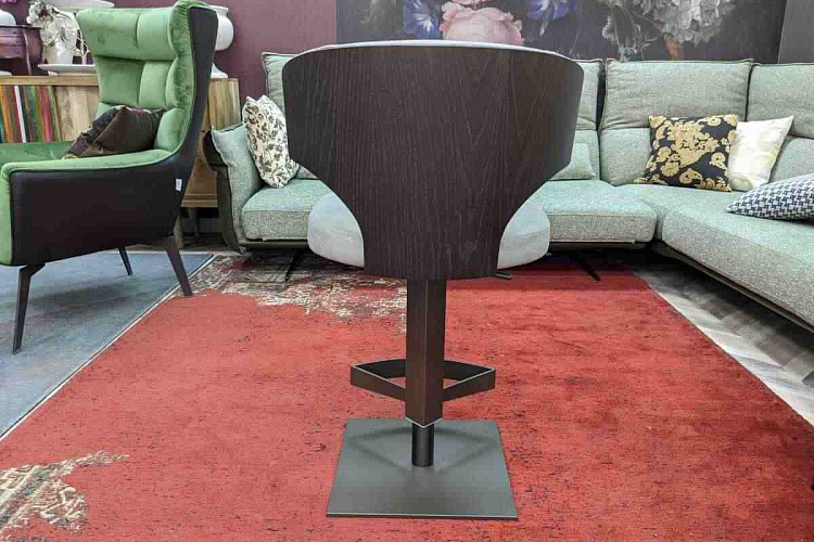 Барный стул на стальном вращающемся и регулируемом основании, оснащенном газ-патроном и подножкой. Каркас сиденья изготовлен из гнуто-клееной древесины ясеня, обтянут пенополиуретаном. Отделка - натуральная кожа с эффектом нубук. Задняя спинка сиденья изготовлена из ясеня. Wing объединяет в себе тепло дерева и нежность велюра, создавая уютный дизайн. Задняя часть спинки, отделанная темным орехом, создает ощущение основательности и, как надежная броня, защищает мягкость светлого велюра. Она гармонично обхватывает спину сидящего, обеспечивая поддержку и комфорт. Весь силуэт стула отличается отсутствием резких углов, благодаря чему все линии выглядят мягкими и обволакивающими. Матовое бронзовое основание гармонирует со спинкой и придает всему образу завершенность. В НАЛИЧИИ 3 ШТ.