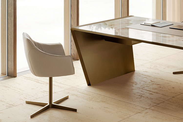 Дизайн Antoy Filips. Era - это мягкое кресло в изысканном и роскошном стиле, но в тоже время современное. Это идеальное решение для работы в обустроенном домашнем офисе. Спроектированное дизайнером Antoy Filips, это кресло в данном варианте представлено на крестообразном поворотном основании, выполненном из окрашенного или матового алюминия. Стиль, линии и формы чрезвычайно актуальны и современны. Сильная сторона этого предмета интерьера - это детали и внимание к швейной технике, на которые сразу обращаешь внимание. По этой же причине кресло Era 4 Ways прекрасно сочетается вместе с письменным столом Rotolo Desk, богатым скульптурными формами, а также составляет изысканное сочетание вместе с библиотекой.Bendy. Кресло может быть изготовлено в натуральной коже, экокоже и ткани, а также может быть выпонено на крутящемся основании на колесиках. Это кресло является универсальным и подходящим для многочисленных ситуаций и различных целей: офис, домашнее рабочее место, конференц-зона и столовая. Цена просчитана за стул на металлическом поворотном основании бронзового цвета Обивка эко кожа EFORMA Бренд Eforma - это настоящий оплот высококачественной итальянской мебели, за которой стоят вековые традиции. Мастера компании - наследники ремесленного мастерства Северо-Восточного итальянского региона Венето, знатоки своего дела, умеющие сделать бесценные предметы мебели, благодаря наилучшим материалам, тщательной обработке и бережного отношения к каждой детали. В этом и выражается совершенство «Made in Italy». Именно истории профессионалов Eforma и синергия различных навыков позволяют создавать особенные продукты, ценные еще на стадии процесса своего рождения. От кожи до роскошных материалов, от элегантных мраморных поверхностей до металлических с новейшим стилем - внимание к мастерству имеет главенствующую позицию, имеющую устойчивое стремление к обновлению: таким образом, мастерство преобразует традицию в повод приблизиться к будущему. Вся мебель Eforma производится исключительно руками мастеров на заводах в Тьене согласно принципам заботы о людях и природе. Идеология Eforma выделяет своей главенствующей ролью способность создавать единственные в своем роде продукты, совершенствующие интерьер, с помощью внимательности к дизайну и безупречному пошиву. Бренд уверен, что только чувственность может открыть безграничный творческий мир, позволяющий родиться безопасным и качественным продуктам. Продукция Eforma демонстрирует совершенство Made in Italy благодаря точному исполнению и особому вниманию к деталям. Столы, серванты, стулья и многое другое полностью изготавливаются вручную с использованием самых лучших материалов и покрытий. Провокационный дизайн и мастерство исполнения делают предметы, которые будут сопровождать вас в повседневной жизни, уникальными. Благодаря постоянному диалогу между традициями и инновациями ремесленный опыт превращается в идею, которая смотрит в перспективу. Коллекции Eforma обогащают мебельный интерьер, соблюдая оригинальный стиль интерьера. Именно из единства ценностей, таких как гармония, утонченность и искусство, рождаются продукты Eforma.