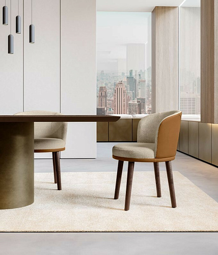 Дизайн: Nello Palomba, Antony Filips. Стул Ginger на деревянном основании - это уже больше по форме кресло, выполненное в классическом стиле, который пересмотрен в современном ключе и с актуальным взглядом на комфорт и функциональность. Гармоничные и рафинированные формы идеально подходят для таких жилых помещений, как гостиная, столовая или спальня, а также для офисных зон, где требуется подчеркнуть статусность и престиж компании. Элегантное деревянное основание обеспечивает стабильность и надежность стула, гарантируя его долговечность в использовании. Линии основания сливаются с классическими формами сиденья, создавая изысканную и сбалансированную эстетику. Помимо классической комплектации стул может быть изготовлен на поворотном металлическом основании. Размер L57 P58 L78 EFORMA Бренд Eforma - это настоящий оплот высококачественной итальянской мебели, за которой стоят вековые традиции. Мастера компании - наследники ремесленного мастерства Северо-Восточного итальянского региона Венето, знатоки своего дела, умеющие сделать бесценные предметы мебели, благодаря наилучшим материалам, тщательной обработке и бережного отношения к каждой детали. В этом и выражается совершенство «Made in Italy». Именно истории профессионалов Eforma и синергия различных навыков позволяют создавать особенные продукты, ценные еще на стадии процесса своего рождения. От кожи до роскошных материалов, от элегантных мраморных поверхностей до металлических с новейшим стилем - внимание к мастерству имеет главенствующую позицию, имеющую устойчивое стремление к обновлению: таким образом, мастерство преобразует традицию в повод приблизиться к будущему. Вся мебель Eforma производится исключительно руками мастеров на заводах в Тьене согласно принципам заботы о людях и природе. Идеология Eforma выделяет своей главенствующей ролью способность создавать единственные в своем роде продукты, совершенствующие интерьер, с помощью внимательности к дизайну и безупречному пошиву. Бренд уверен, что только чувственность может открыть безграничный творческий мир, позволяющий родиться безопасным и качественным продуктам. Продукция Eforma демонстрирует совершенство Made in Italy благодаря точному исполнению и особому вниманию к деталям. Столы, серванты, стулья и многое другое полностью изготавливаются вручную с использованием самых лучших материалов и покрытий. Провокационный дизайн и мастерство исполнения делают предметы, которые будут сопровождать вас в повседневной жизни, уникальными. Благодаря постоянному диалогу между традициями и инновациями ремесленный опыт превращается в идею, которая смотрит в перспективу. Коллекции Eforma обогащают мебельный интерьер, соблюдая оригинальный стиль интерьера. Именно из единства ценностей, таких как гармония, утонченность и искусство, рождаются продукты Eforma.