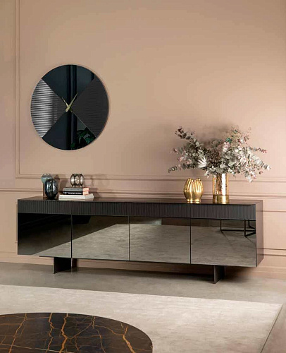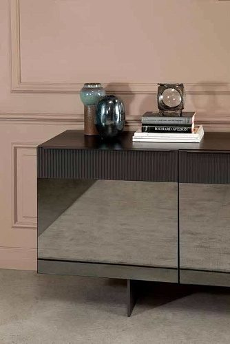 Деревянная тумба с 4 зеркальными дверцами. Основание из металла серого цвета. L 239 P 50 H 75 cm Мебельная фабрика Tonin Casa основана в 1975 году итальянцем Gianni Tonin, который и сегодня стоит во главе компании. В начале восьмидесятых фабрика выпускает каталог своей первой классической коллекции, которая быстро завоевывает внутренний рынок сочетанием традиционного итальянского стиля и функциональностью. В девяностых годах классическую линейку дополняет современная коллекция, ставшая визитной карточкой компании и сделавшая мебель от Tonin Casa легко узнаваемой среди массы безликой современной мебели. Сегодня Gianni Tonin уже вместе со своим сыном Nicola Tonin - продолжателем мебельной династии и дизайнером - создают новые коллекции и, как любой модный дом с мировым именем, выпускают каждый год очередные шедевры мебельного искусства, демонстрируя их на выставках Милана, Нью-Йорка, Парижа и Москвы. Именно стремление производить качественную и стильную дизайнерскую мебель и воплотить в каждом предмете и аксессуаре функциональную роскошь покорило сердца покупателей в Европе и Америке.