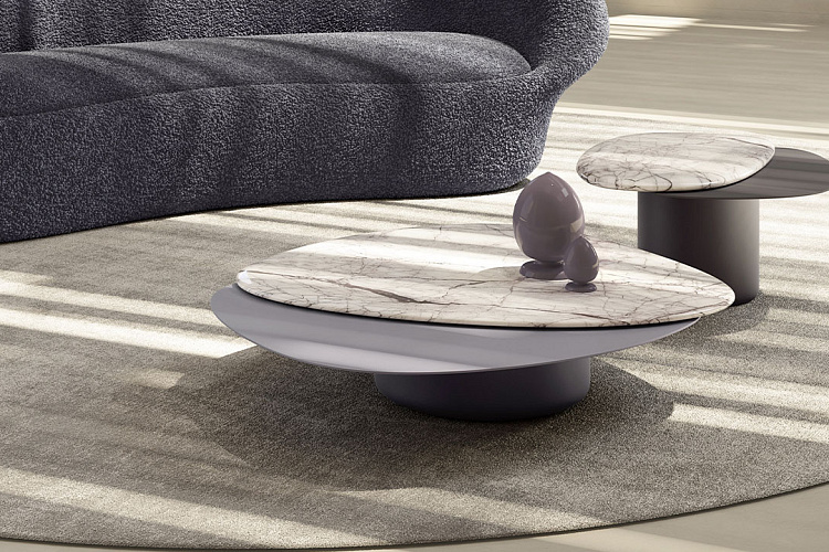 Эти журнальные столики своей естественной формой напоминают о плавном течении воды. Коллекция отличается простыми линиями и минималистичными формами, которые идеально сочетаются с высоким качеством исполнения и деталями, плавно перетекающими друг в друга, имитируя движение воды — источника всего живого.