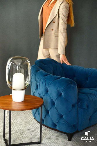 Техника capitonne, используемая и на сиденье и на каркасе кресла превращает модель Deliziante в икону элегантности и символ ремесленного искусства, которое характеризует каждое изделие Calia Italia. Размер L85 P84 H71 1965 год- начало истории фабрики CALIA 2015 год стал особенным годом для фабрики Calia Italia, которая отпраздновала первые 50 лет с момента ее основания. Полвека работы над постоянно разрабатываемыми проектами для непрерывно расширяющегося рынка, полвека работы способных и опытных специалистов, которые в состоянии предоставить каждой модели кресла или дивана прекрасное качество и исключительность, присущие итальянскому производству - Made in Italy. История фабрики Calia Italia начинается с человека, основателя фабрики Либорио Винченцо Калия- плотника и мастера своего дела, который начал создавать и производить диваны в Матере в 1965 году. Благодаря творческому подходу Саверио Калия и коммерческой стратегии Джузеппе Калия марка Сalia Italia сегодня может предложить свыше 50 новых моделей в год с широким ассортиментом отделки в коже и ткани: широкая гамма из 40 артикулов и свыше 400 вариантов расцветок. Calia Italia направляет свое предложение, преимуществом которого является 100% итальянское производство, постоянно развивающемуся международному рынку, который от Европы до Америки открывается Ближнему Востоку, затрагивает Дальний Восток, Китай, южную часть Кореи и Японию. Фабрика располагается в окрестностях Матеры, в области Мурджа, в сердце производства мягкой мебели и логистической передовой системы. Ремесленное искусство, ценность истоков, толчок в сторону будущего.