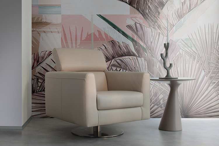 Цена просчитана за кресло на поворотном основании. Обивка - натуральная кожа L80 P91 H74 HS45 PS54 1965 год- начало истории фабрики CALIA 2015 год стал особенным годом для фабрики Calia Italia, которая отпраздновала первые 50 лет с момента ее основания. Полвека работы над постоянно разрабатываемыми проектами для непрерывно расширяющегося рынка, полвека работы способных и опытных специалистов, которые в состоянии предоставить каждой модели кресла или дивана прекрасное качество и исключительность, присущие итальянскому производству - Made in Italy. История фабрики Calia Italia начинается с человека, основателя фабрики Либорио Винченцо Калия- плотника и мастера своего дела, который начал создавать и производить диваны в Матере в 1965 году. Благодаря творческому подходу Саверио Калия и коммерческой стратегии Джузеппе Калия марка Сalia Italia сегодня может предложить свыше 50 новых моделей в год с широким ассортиментом отделки в коже и ткани: широкая гамма из 40 артикулов и свыше 400 вариантов расцветок. Calia Italia направляет свое предложение, преимуществом которого является 100% итальянское производство, постоянно развивающемуся международному рынку, который от Европы до Америки открывается Ближнему Востоку, затрагивает Дальний Восток, Китай, южную часть Кореи и Японию. Фабрика располагается в окрестностях Матеры, в области Мурджа, в сердце производства мягкой мебели и логистической передовой системы. Ремесленное искусство, ценность истоков, толчок в сторону будущего.