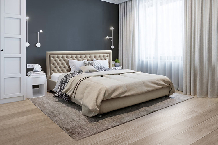 Кровать Альба 2 – идеальное решение для Вашей спальни, которое наполнит ее атмосферой наслаждения отдыхом. Высокая мягкая спинка кровати с утяжками скрасит Ваше время в вечерние часы. Вы можете удобно облокотиться на нее, наслаждаясь просмотром любимого фильма или погружаясь в чтение увлекательной книги. Облицованная мягкой тканью, она приятна на ощупь и не имеет острых углов, что делает передвижение вокруг кровати комфортным и безопасным.