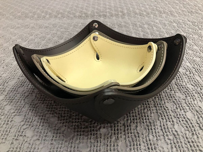 Материал: особо прочная жесткая натуральная кожа cuoio. Маленький Длина: 16 cm Высота: 6 cm Глубина: 16 cm Средний Длина: 18 cm Высота: 7 cm Ширина: 18 cm Большой Длина: 22 cm Высота: 8 cm Глубина: 22 cm